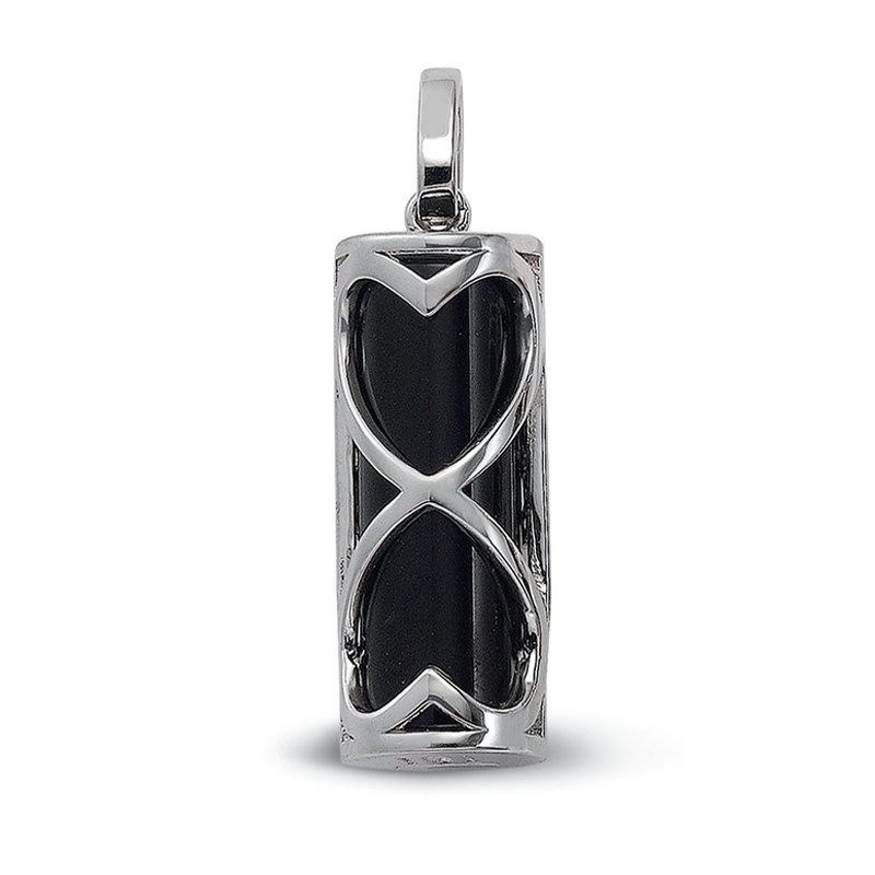 Pendentif Tiki Polynésien M'iTiK® en argent blanc 925 millièmes et onyx comme pierre centrale.